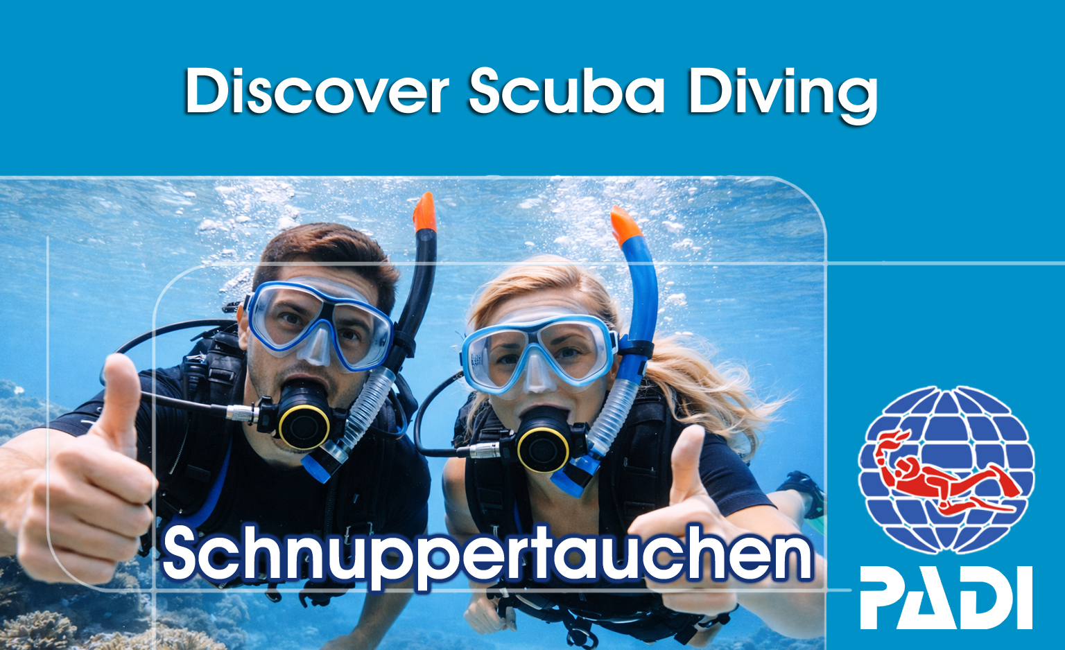 Das Padi Discover Scuba Diving Programm führt Personen auf entspannte Weise in das Gerätetauchen ein. Unter Anleitung eines Padi Profis lernen die neuen Taucher die grundlegenden Sicherheitsregeln, die Tauchausrüstung anzulegen und damit in einer kontrollierten Umgeben unter Wasser zu schwimmen.